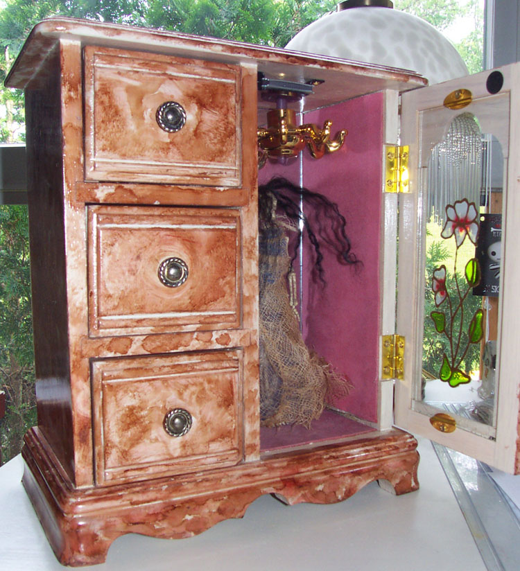 our dearly departed Pandora...locked away & alone in the attic, the 41st in a series of OOAK un-"Natural" creations from the dArK cobwebbed filled hemisphere of my brain.